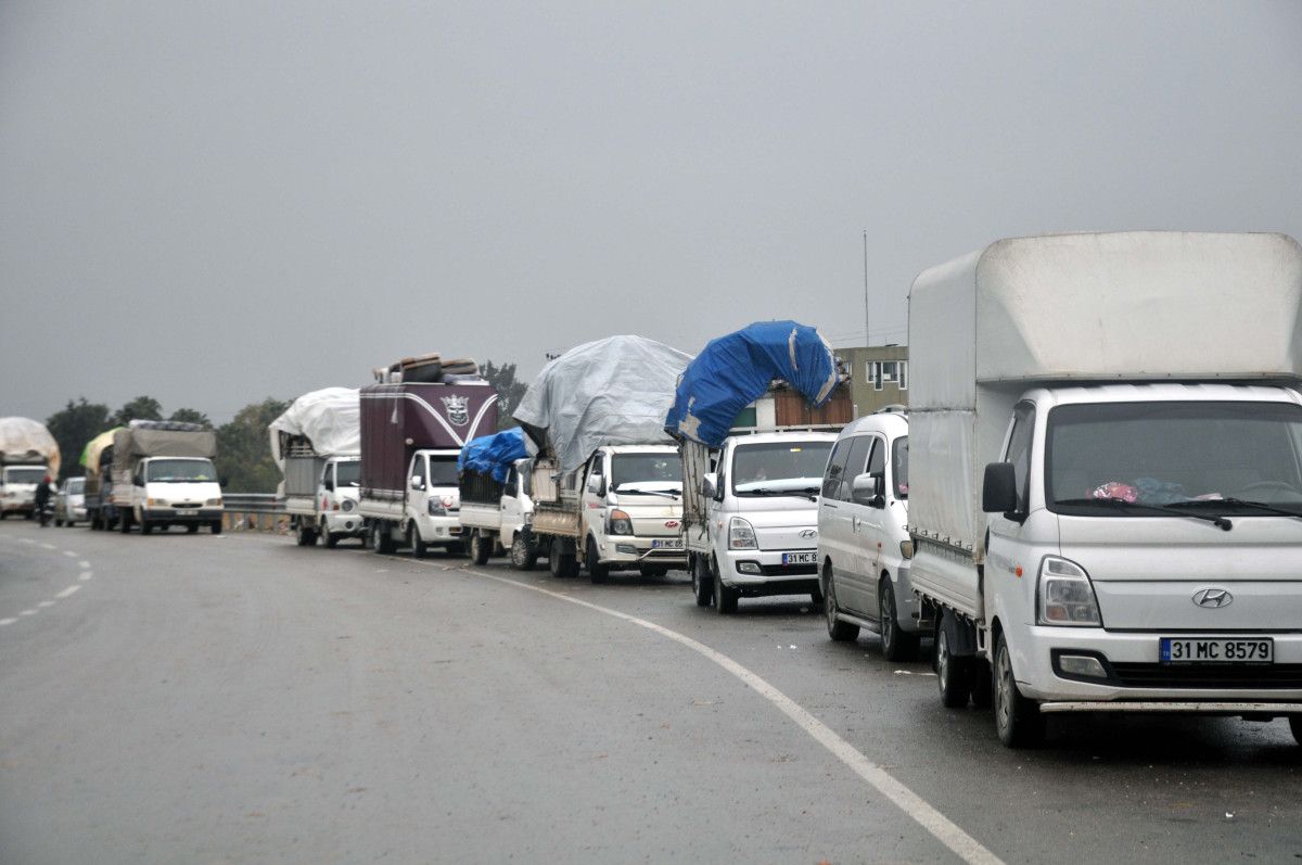 Vatanlarına geri dönmek isteyen Suriyeliler, Hatay’ın Reyhanlı ilçesindeki Cilvegözü Gümrük Kapısı, Kumlu ilçesindeki Zeytindalı Kara Hudut Kapısı ile Yayladağı ilçesindeki Gümrük Kapısı’ndan çıkışlarına devam ediyor.